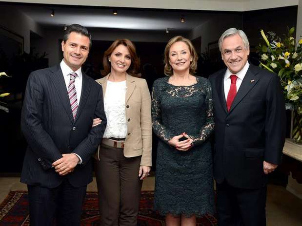 Fotografía cedida por el gobierno de Chile del presidente de ese país sudamericano, Sebastián Piñera, y su esposa Cecilia Morel, junto al mandatario electo de México, Enrique Peña Nieto, y su esposa Angélica Rivera, en Santiago, en el marco de la gira del priista por Latinoamérica.
